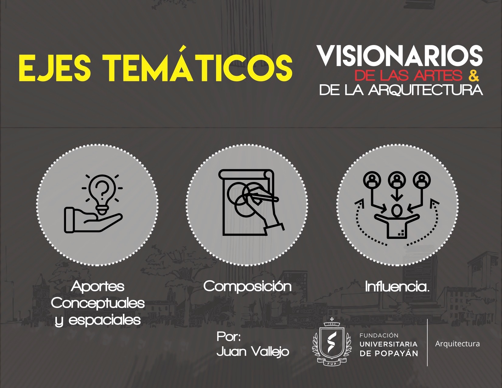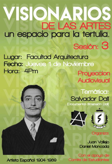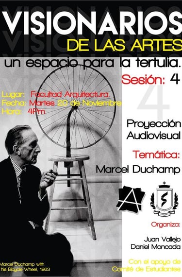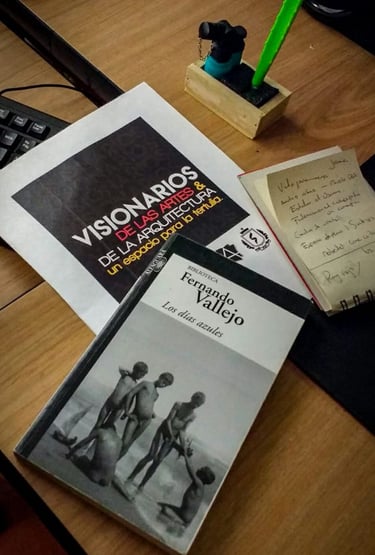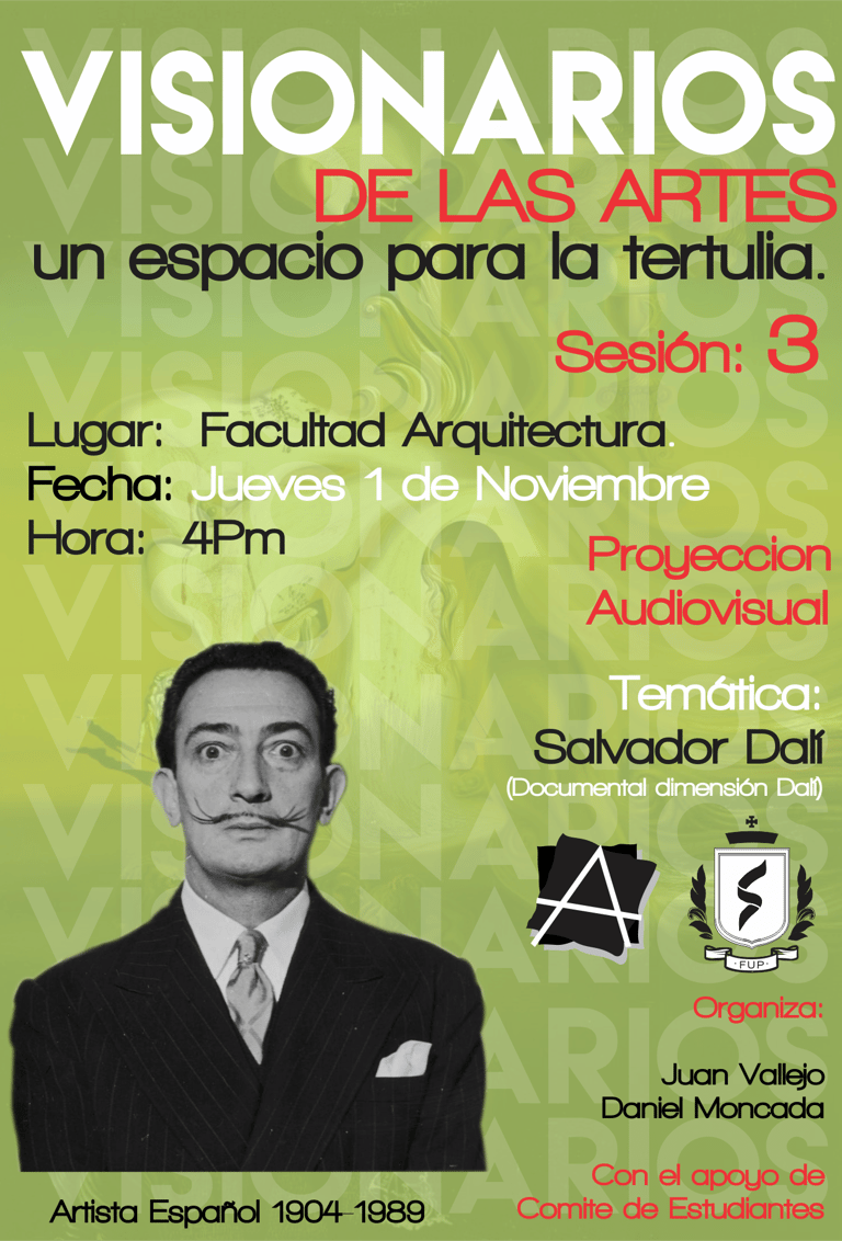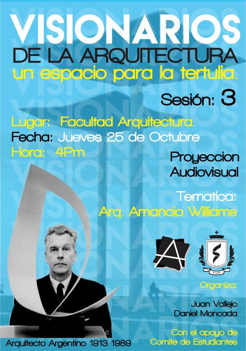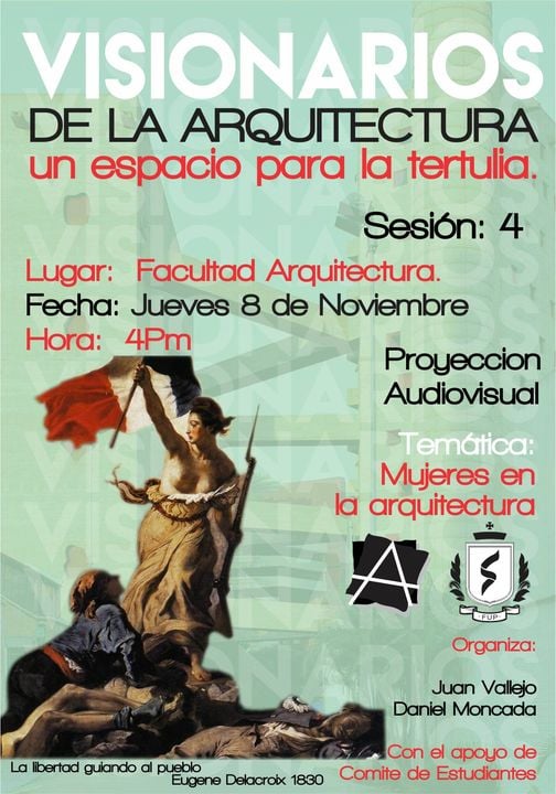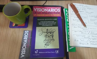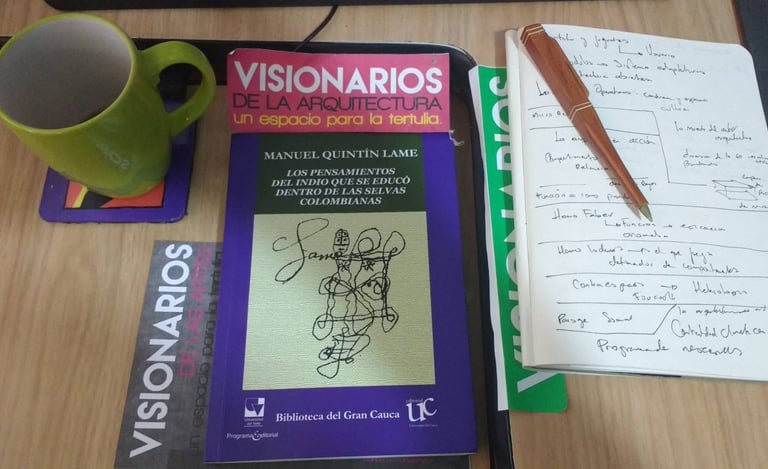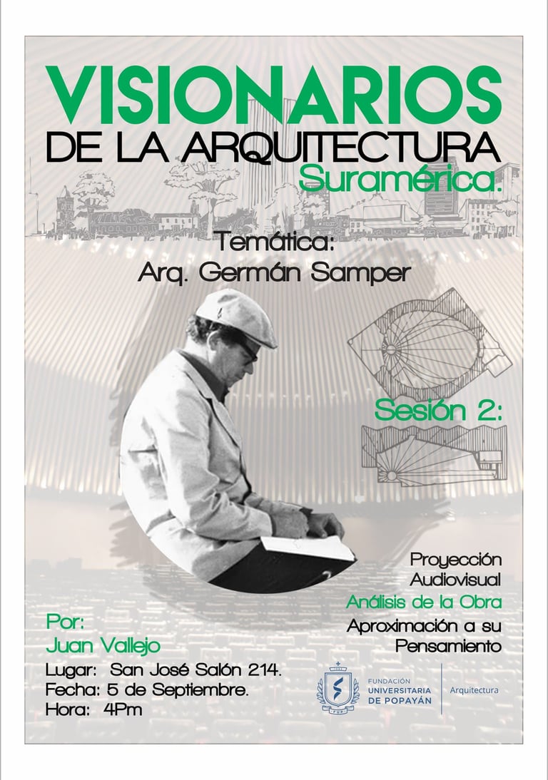 Visionarios de la arquitectura y el arte, es un espacio que nace desde los estudiantes en el 2018, que tiene tres momentos, el primero cuando es desarrollado por mi (Juan Vallejo), luego se vinculan dos estudiantes en ese momento, Linda Artunduaga y Sebastián López[1], y luego en 2020 después de volver de mi intercambio con la UDF en Brasil, se retoman el ciclo Visionarios, pero llegada la pandemia el proyecto queda en pausa, sin embargo, el ímpetu siempre existió y de cierta forma ha seguido su actividad en las clases de teoría, claramente sin alterar el contenido curricular sino complementada